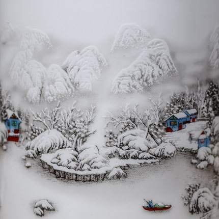White snow scene pen holder