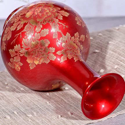 Red crystal glaze vase flower arrangement